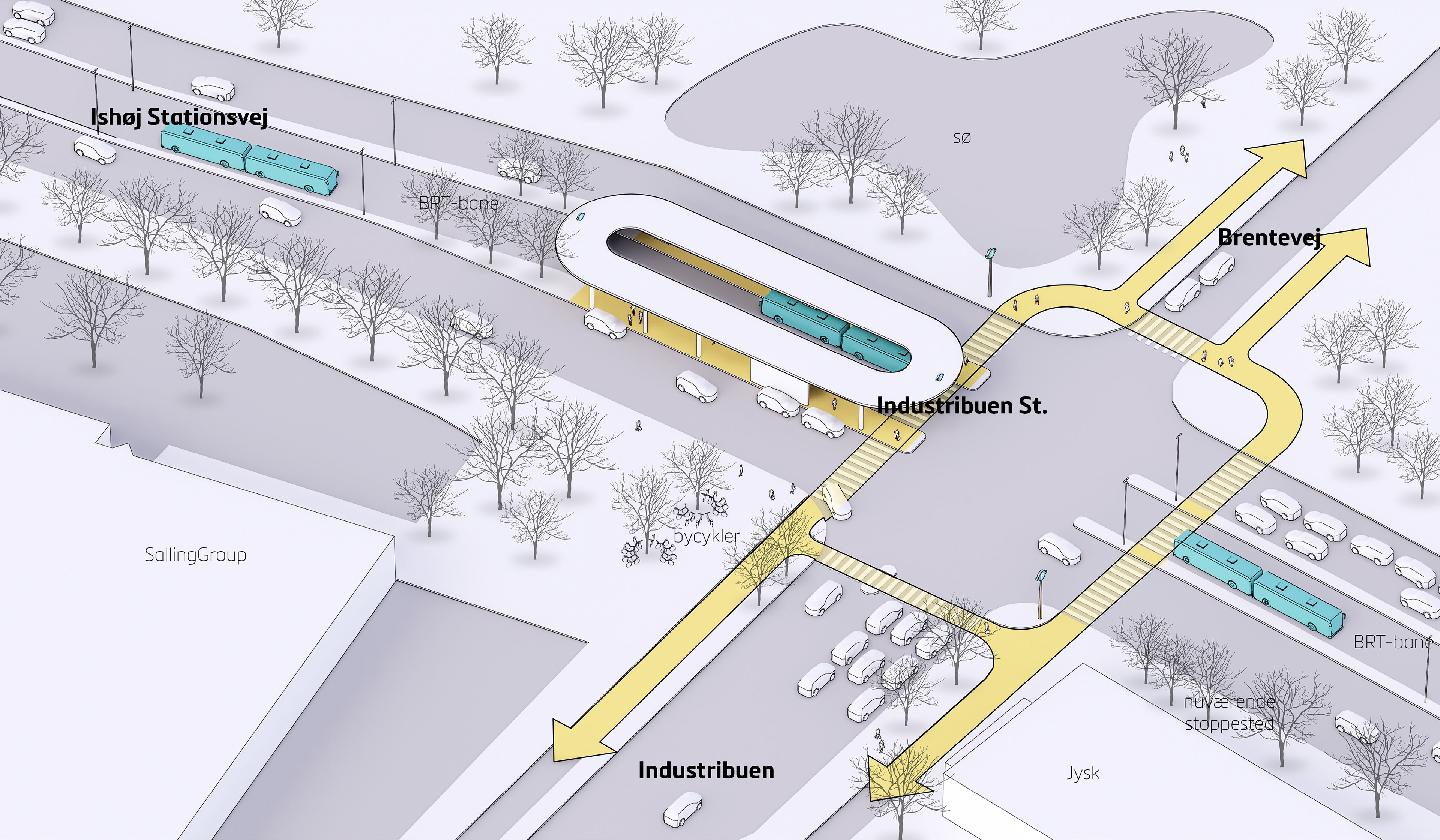 • Mission description: To create a visualization of the BRT (Bus Rapid Transit) vision project — a “light rail on rubber wheels,” serving as an alternative to the traditional light rail system. The goal was to communicate Movia’s vision for BRT and gain political and governmental support from the Danish Parliament, regional authorities, and municipalities for further development.